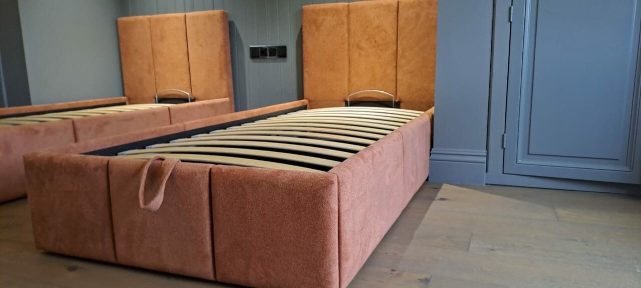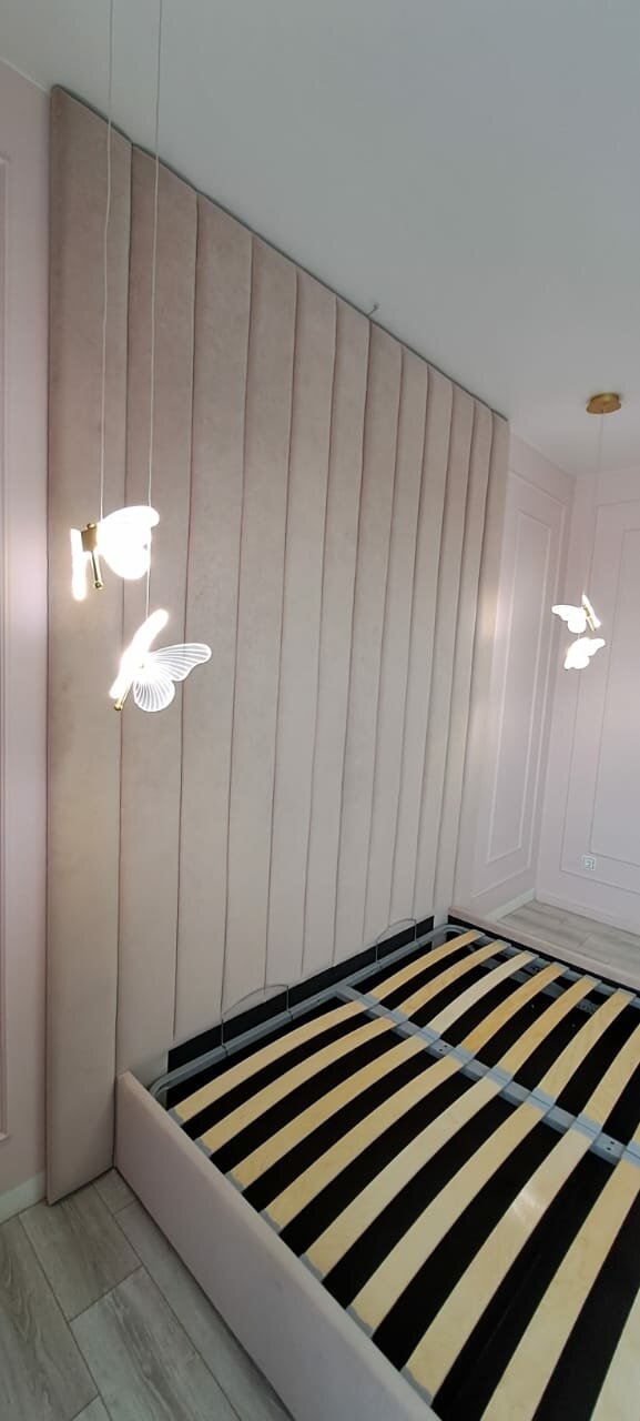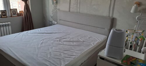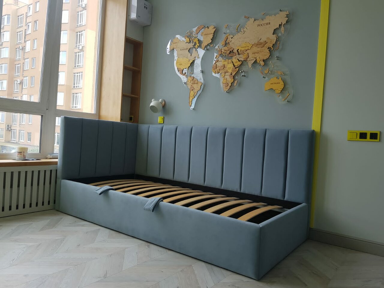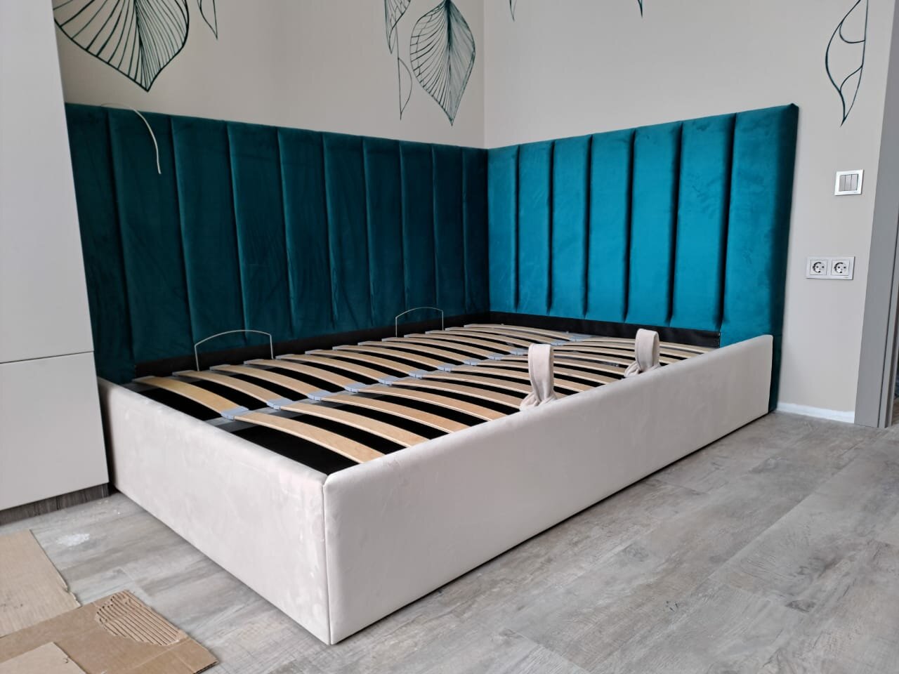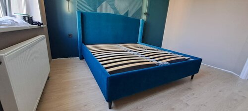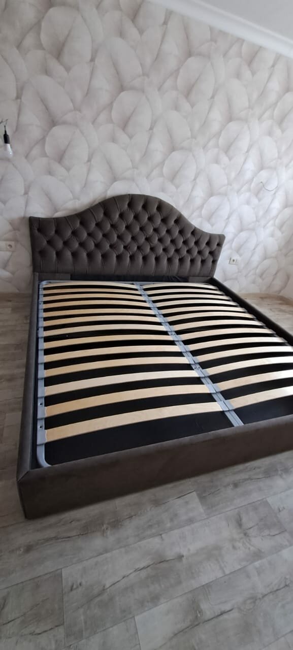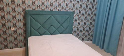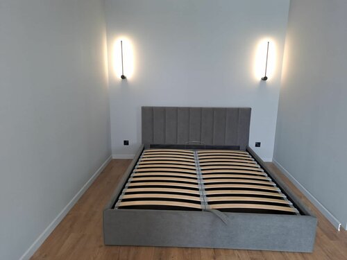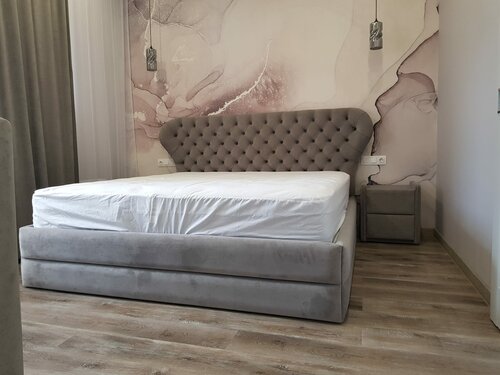 Выбирали из предложенных вариантов продавцом. Кровать отлично вписалась в интерьер и будет служить ещё диваном при встрече друзей! Порадовало разнообразие моделей и оттенков тканей. Матрас приобрели там же со скидкой, сравнили цены на рынке, действительно скидка была.